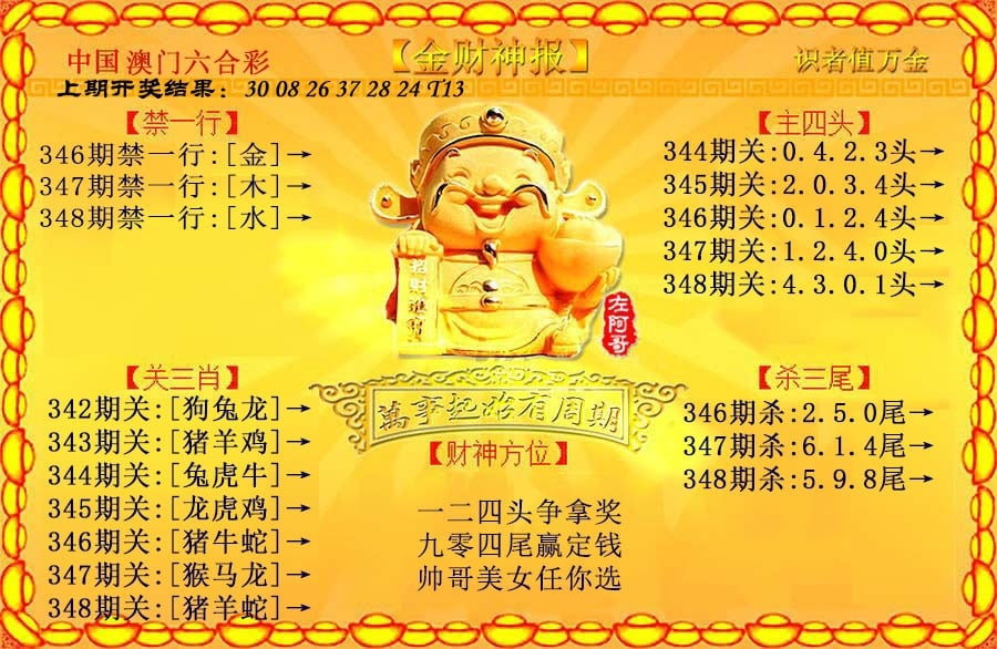 324期:【旺财好运来】📓杀一尾📓 不可能再连庄 必杀